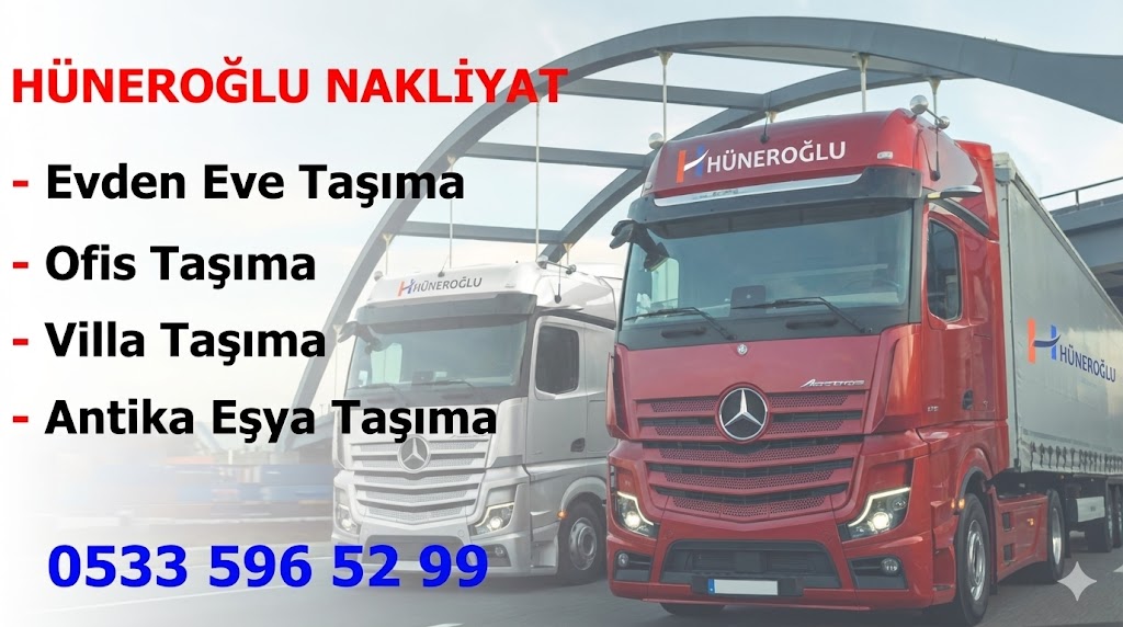 Evden eve nakliyat hizmeti arayışında olanlar için en güvenilir çözüm Hüneroğlu Nakliyat’ta! Taşıma işlemlerinizi profesyonel ve deneyimli ekibimizle hızlı, planlı ve güvenli bir şekilde gerçekleştiriyoruz. Ev eşyalarınızı sigortalı taşıma seçenekleriyle her türlü riske karşı koruma altına alıyoruz. Modern ve donanımlı araç filomuz ile uzman kadromuz sayesinde eşyalarınız, özenle paketlenerek en güvenli şekilde yeni adresinize ulaştırılır. Taşıma sürecinin her aşamasında müşteri memnuniyetini ön planda tutan Hüneroğlu Nakliyat, eşyalarınızın zamanında ve sorunsuz taşınmasını sağlar. Evden eve nakliyat, ofis taşımacılığı ve eşya depolama hizmetleriyle sektörde güvenilir ve tercih edilen firmalar arasında yer alan Hüneroğlu Nakliyat ile taşınmak artık çok daha kolay ve stressiz!